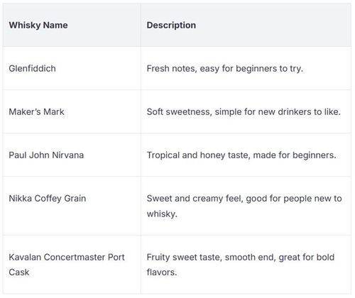 There are many beginner whisky bottles you can try. Each one has its own taste and is simple to buy. Try a few different kinds to see which you like most. Have fun as you learn about whisky!