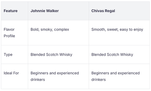 Hier ist eine Tabelle mit zwei berühmten Blended Whisky-Marken: