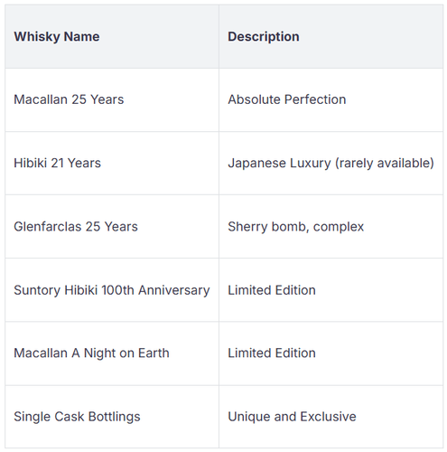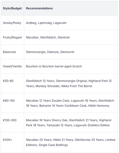 Tipp: Wenn Sie sich unsicher fühlen, ist ein klassischer Single Malt oder ein bekannter Blend immer eine sichere Wahl.