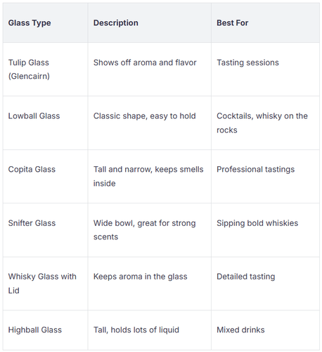 Sie können jedes Whisky-Geschenk mit dem richtigen Glas besonderer gestalten. Glaswaren helfen, die besten Geschmäcker und Aromen herauszuholen. Hier ist ein schneller Überblick, was Sie finden könnten: