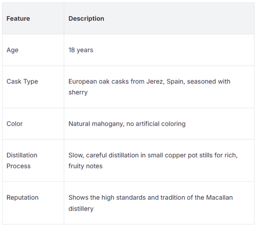 Viele Experten haben die Macallan 18 Sherry Oak 2026 Abfüllung bewertet. Sie betrachten Dinge wie Alter, Fassart, Farbe und Herstellungsweise. Experten sagen, dieser Whisky sei besonders, weil er mit Sorgfalt hergestellt wird und starke Aromen besitzt. Die Brennerei verwendet kleine Kupfer-Pot-Stills. Diese Art der Whisky-Herstellung verleiht ihm schwere und fruchtige Aromen. Du kannst diese Aromen in jedem Schluck schmecken. Der Whisky reift 18 Jahre in europäischen Eichenfässern aus Jerez, Spanien. Diese Fässer verleihen dem Whisky eine tiefe Mahagoni-Farbe. Die Farbe ist natürlich und stammt nur vom Fass. Kein künstlicher Farbstoff wird hinzugefügt.