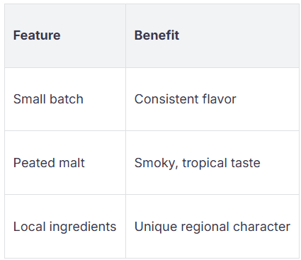 De nombreux fans de whisky parlent du plan Peatist de Kavalan. Les gens apprécient beaucoup les saveurs fumées. Le style Small Batch vous permet de goûter la tourbe d'une nouvelle façon. Vous obtenez à la fois des saveurs sucrées et fumées ensemble. Kavalan utilise de l'orge de Taïwan et de l'eau de la région. Cela donne au whisky une touche de saveur tropicale.