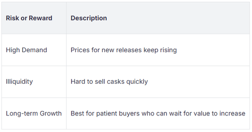 Avant de vous lancer, rappelez-vous que les investissements en fûts de whisky comportent des risques. Vous pourriez devoir attendre des années pour voir de gros rendements, et vendre des fûts n'est pas toujours facile. Pourtant, si vous voulez explorer de nouvelles sorties ou essayer d'investir, c'est le bon moment pour surveiller le marché des courtages.