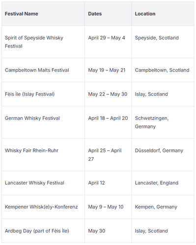 April and May are great months for whisky festivals in Europe. These months give fans special experiences.